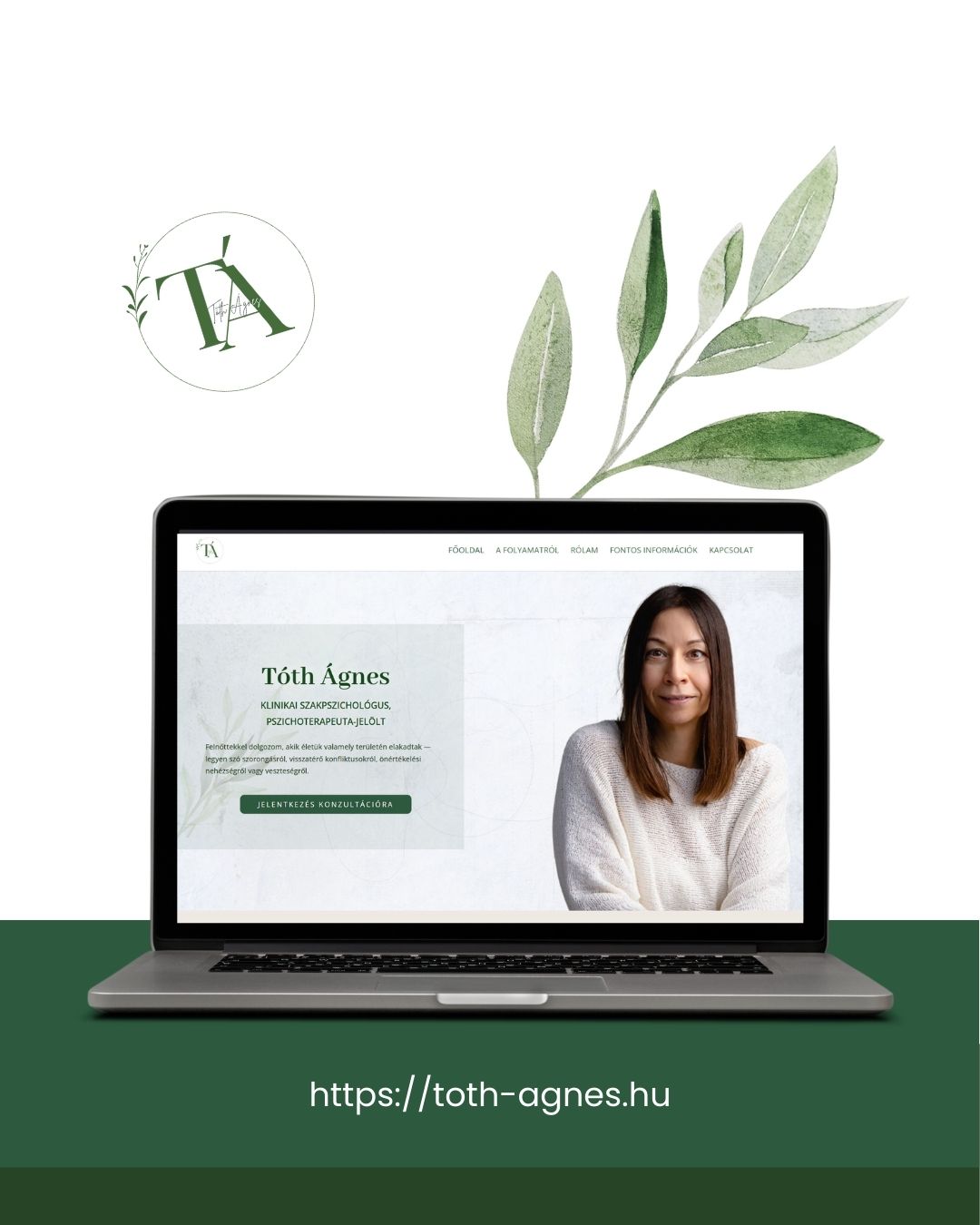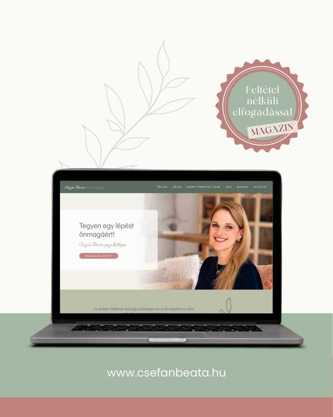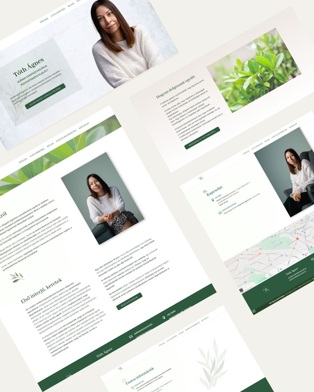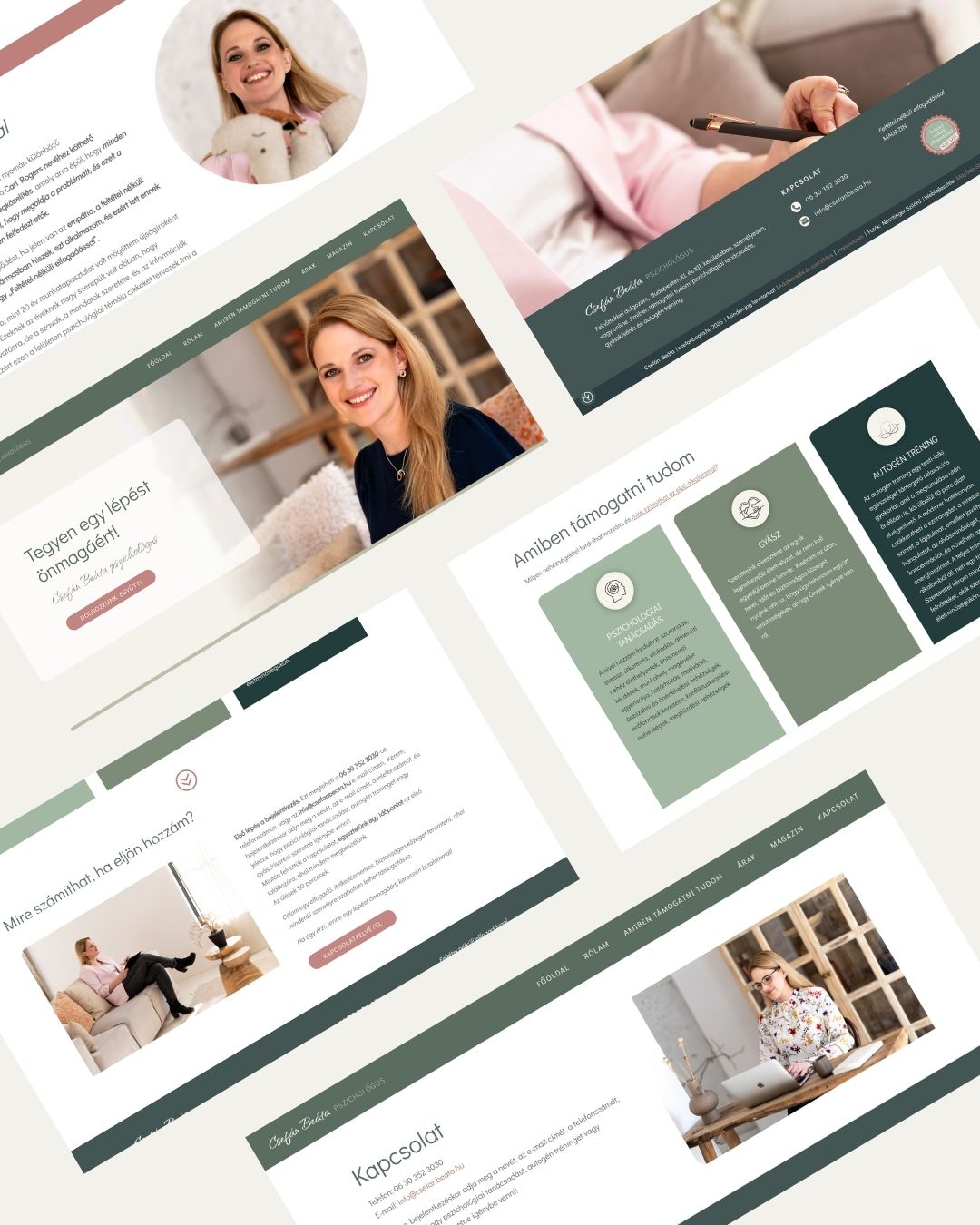 Ügyfelünk mentálhigiénés szakember, akinek oldalát saját fotói és kompakt, lényegre törő tartalma teszik egyedivé. A közös munka során izgalmas volt látni, ahogyan a képek megtalálják saját helyüket fejlécként vagy háttérként, harmonikusan belesimulnak a kiválasztott színvilágba. Minden grafikai elem a segítő beszélgetések hangulatát, harmóniára törekvését, kifinomultságát, emellett szakmaiságát, emberközelségét és kidolgozottságát hivatott kifejezni.