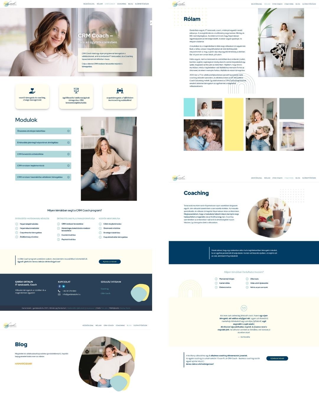Kata vállalkozásának fő irányvonala, célja nem volt még teljesen kidolgozva, ez a közös munkánk során formálódott, konkretizálódott a honlapkészítési folyamatok közben. Szakmai tudásával CRM coachként és tanácsadóként egy eléggé speciális szegmensnek tud célirányos segítséget nyújtani, ezt igyekszik kiemelni a honlap elrendezése és szövegezése is.